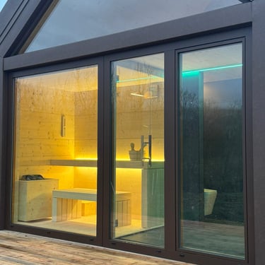 Ogni sauna che produciamo è su misura e personalizzata per adattarsi alle esigenze del committente. La parete frontale vetrata, combinata con i principi tradizionali della costruzione delle saune, conferisce alle nostre cabine un tocco di modernità.