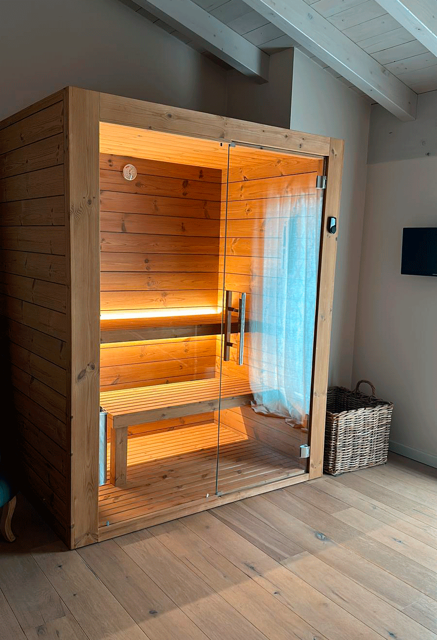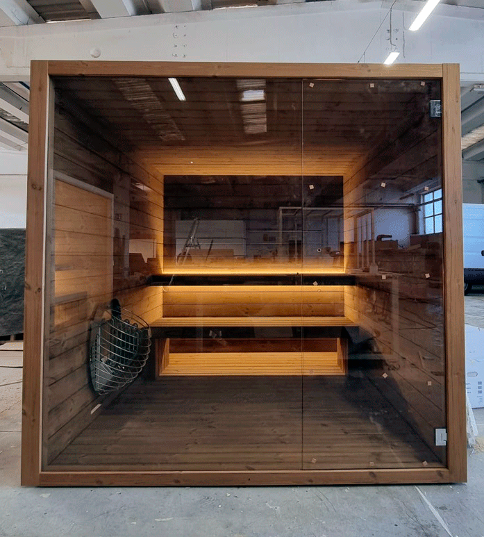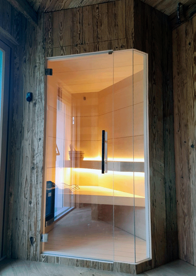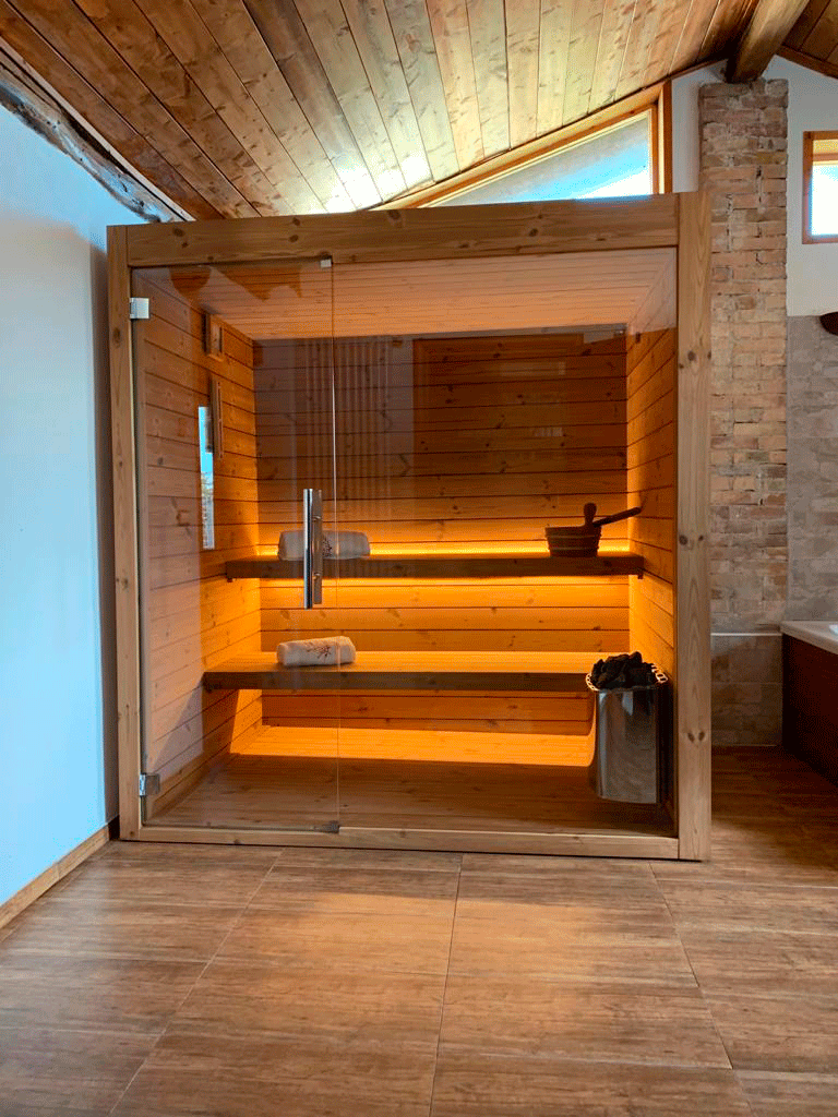 Every sauna we produce is custom-made and tailored to meet the client’s specific needs. The glass front, combined with traditional sauna construction principles, gives our cabins a modern touch.