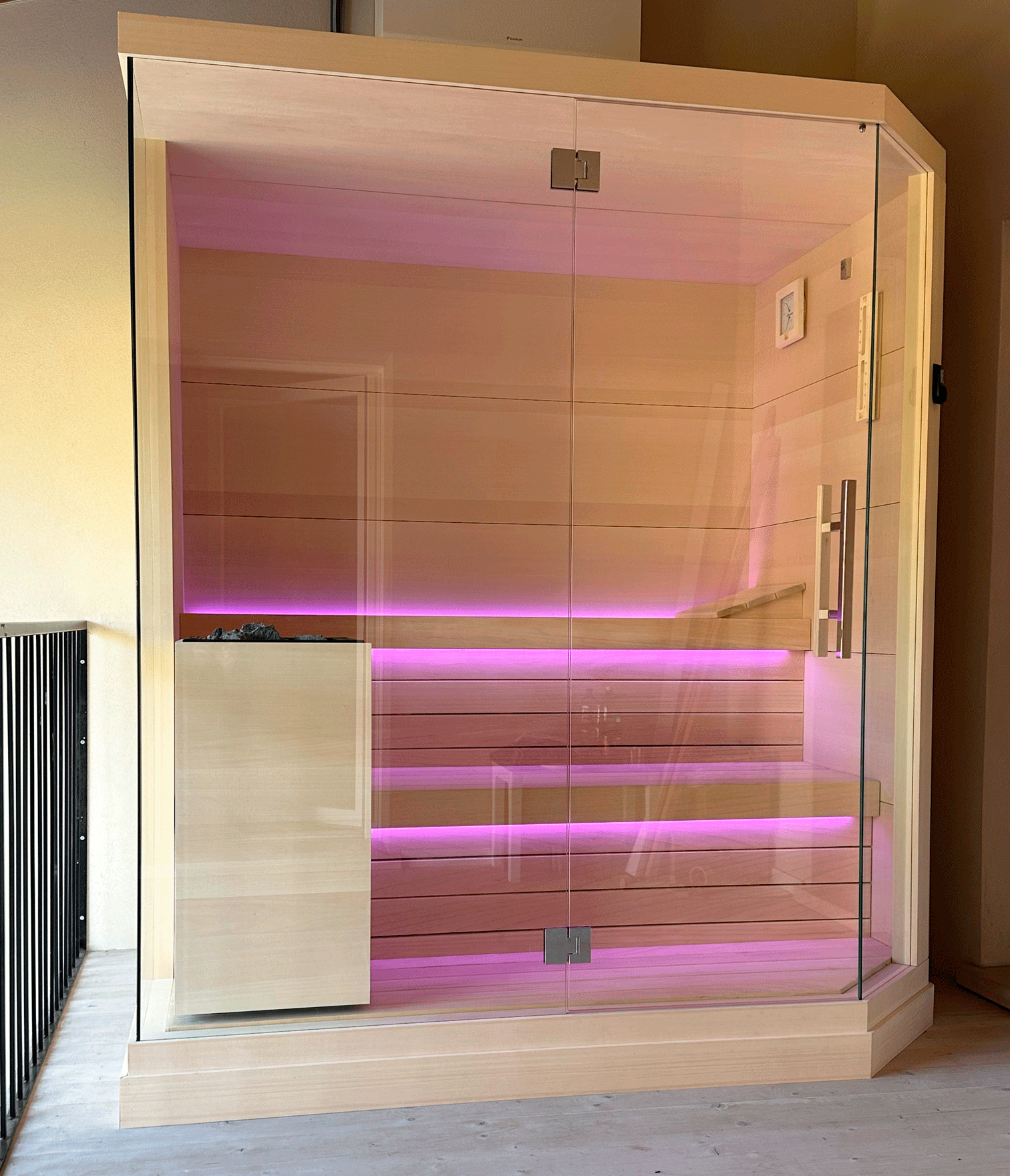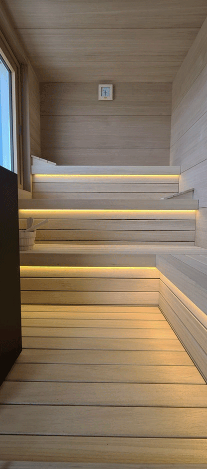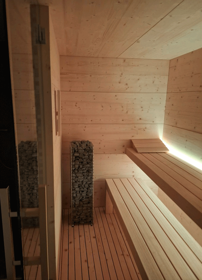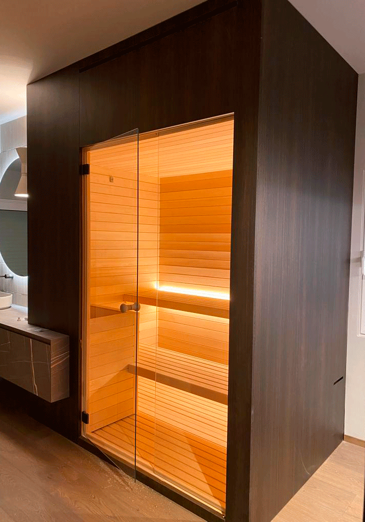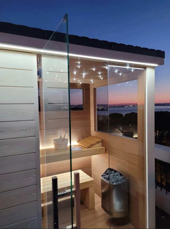 Every sauna we produce is custom-made and tailored to meet the client’s specific needs. The glass front, combined with traditional sauna construction principles, gives our cabins a modern touch.
