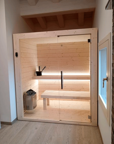 The internal structure, insulated and dehydrated, ensures maximum stability for the sauna. The external walls, when not visible, are lined with specialized panels to prevent any moisture-related issues.