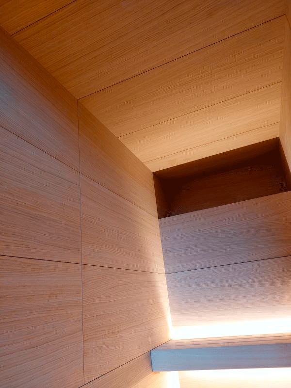 There are no visible nails or screws; every surface is perfectly smoothed and available in a variety of premium woods.